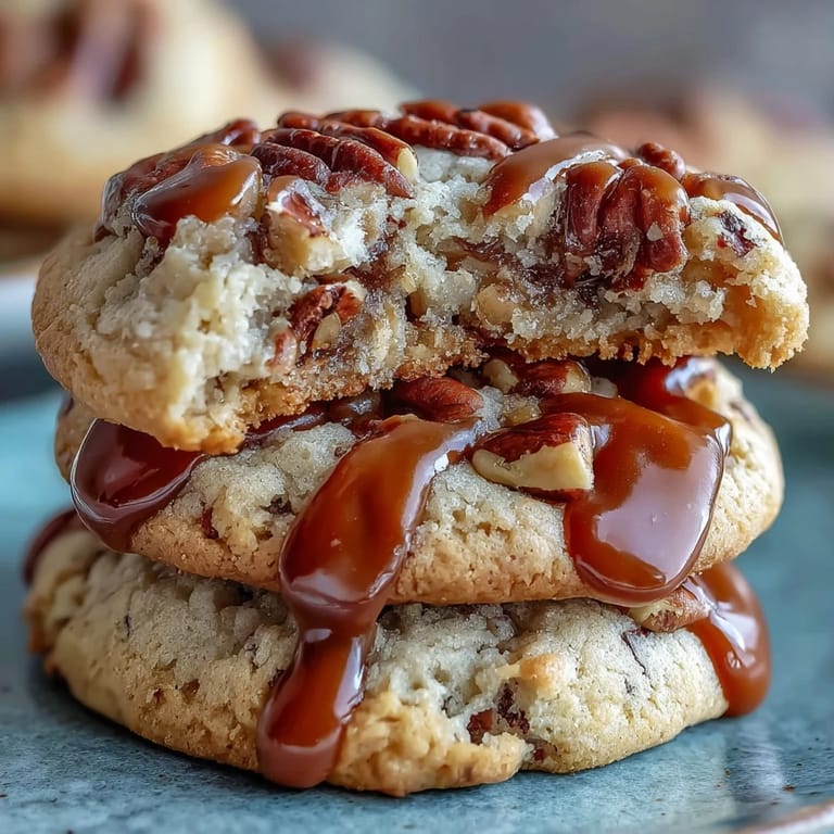 Save to Pinterest There's something about the smell of butter and toasted pecans hitting your kitchen at three in the afternoon that stops time completely. I discovered these cookies on a rainy Tuesday when I was trying to use up pecans from my pantry and had this random craving for something both decadent and homey. The caramel swirl came from wanting to make something feel special without overcomplicating things, and honestly, the first batch disappeared before anyone else even knew I was baking.
