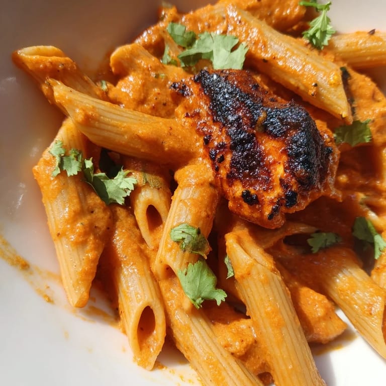 Save to Pinterest My roommate once challenged me to fuse our favorite cuisines into one dinner, and this was born out of that playful dare. The smell of chicken tikka roasting while pasta water bubbled on the next burner felt chaotic at first, but something clicked when I stirred that first spoonful of cream into the spiced tomato base. It turned silky, fragrant, and somehow made total sense. Now it's my go-to when I want comfort with a little edge.