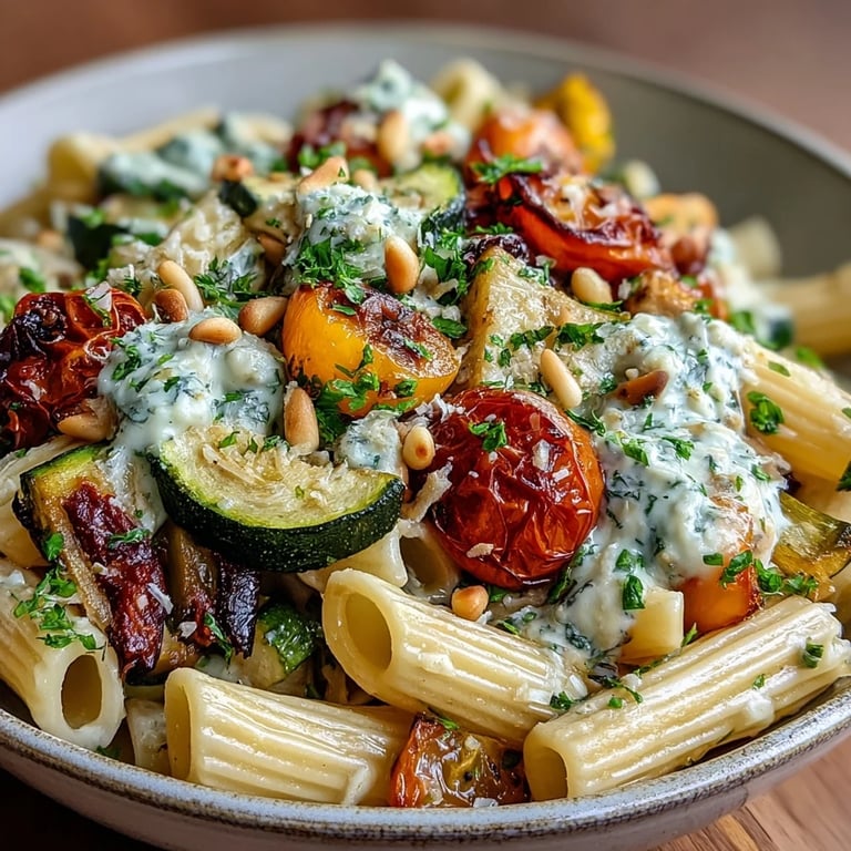 Save to Pinterest There's something about whole wheat pasta that makes you feel like you're actually nourishing yourself instead of just eating lunch. I discovered this bowl on a Tuesday when I was tired of the same rotation and found myself staring at a can of cannellini beans, wondering if Greek yogurt could possibly work in a sauce. Spoiler: it did, and now I make it constantly because it tastes indulgent but leaves you feeling genuinely energized instead of sluggish. The roasted vegetables bring this caramelized sweetness that plays beautifully against the nutty pasta, and the creamy bean sauce ties everything together without any heavy cream in sight.
